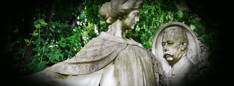 Trauer im Wandel der ZeitDie Bildsprache der Grabdenkmäler hat sich im Laufe der Jahrhunderte – hervorgerufen durch den Wandel der Todesanschauungen – stetig verändert. Während der Renaissance (ca. 1420 bis 1600) wurden Trauergebärden als übermächtiger Schmerz besonders expressiv dargestellt, mit drastischem Gesichtsausdruck, zerrissenen Kleidern, die Hände im Schmerz vor das Gesicht geschlagen.Auch im Barock (ca. 1600 bis 1750) wurde die Empfindung von Trauer durch stark überzeichnete Figuren ausgedrückt, deren Gebärden das Bewusstsein der eigenen Vergänglichkeit durch Jenseitsvorstellungen und Totengedenken zum Ausdruck bringen. Die oft drastische bis hin zum makabren reichende Bildsprache wird im Zeitalter der Aufklärung wieder abgemildert. Im 18. Jahrhundert veränderte sich die Körpersprache im Zuge der Selbstfindung und Selbstdefinition des Bürgertums. Gestik und Mimik wurden zurückgenommen, Gefühle wurden zunehmend verinnerlicht dargestellt. Die visuellen Vorbilder fand man in der klassischen antiken Figur. Anstelle des barocken Totengerippes tritt der trauernde Genius – der Bruder des Schlafes, ausgestattet mit der das verlöschende Leben versinnbildlichten Fackel. Inszenierter TotenkultIn die klassizistische Grabmalkunst (ca. 1750 bis 1820) gingen antike Abschiedsmotive ein, die dem neuen Trauerideal entsprachen. Statt des figürlichen Schmucks kamen ausdrucksstarke Andeutungen: ein versonnener oder in die Ferne schweifender Blick, still im Schoß ruhende Hände oder ein vor das Gesicht gehobenes Tränentuch. Besonders häufig wurde die Gestik von trauernden Schönen dargstellt, die sich schmerzvoll über den Körper des Toten, dessen Sarkophags oder Urne beugen.Die Romantik (ca. 1790 bis 1840) sucht ihre künstlerische Rechtfertigung in der Verherrlichung des Todes. Entsprechend dem wachsenden Bedürfnis nach romantisierenden Totenbildern zieren ab der Jahrhundertmitte vermehrt Engelskulpturen, ab etwa 1870 Plastiken voller neubarocken Pathos die Grabmale. Der Friedhof wird als melancholischer Totengarten inszeniert. Grabdenkmal als KrönungIm 19. Jahrhundert wird der Grabmalkult zum Denkmalkult: Das Grabdenkmal wird eine der zentralen künstlerischen und gesellschaftlichen Aufgaben des Historismus. Die Kunst adelt die Vergänglichkeit des Menschen, spendet den Hinterbliebenen Trost und schafft anmutige Sinnfiguren mit stark aufgeladener Symbolik und Gebärdensprache.Die Vielfalt der Todesikonographie erlischt mit der fast völligen Aufgabe des künstlerisch gestalteten Grabmals nach dem Ersten Weltkrieg. |